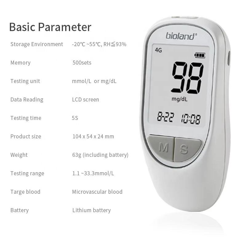 Rango de medición: Con un amplio rango de medición de 20 a 600 mg/dL (1,1 a 33,3 mmol/L), el dispositivo puede medir con precisión un amplio espectro de niveles de glucosa, adecuado para diversas condiciones de salud.