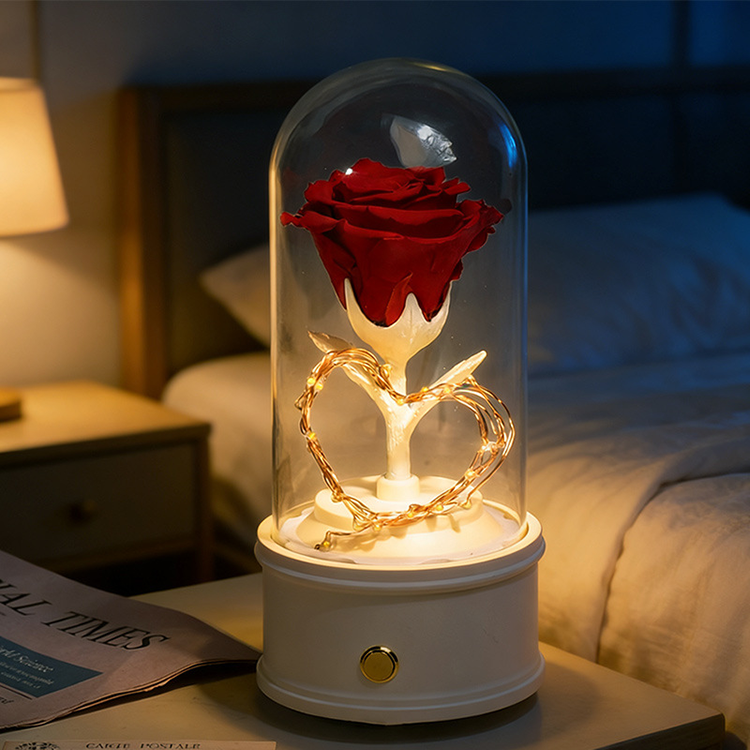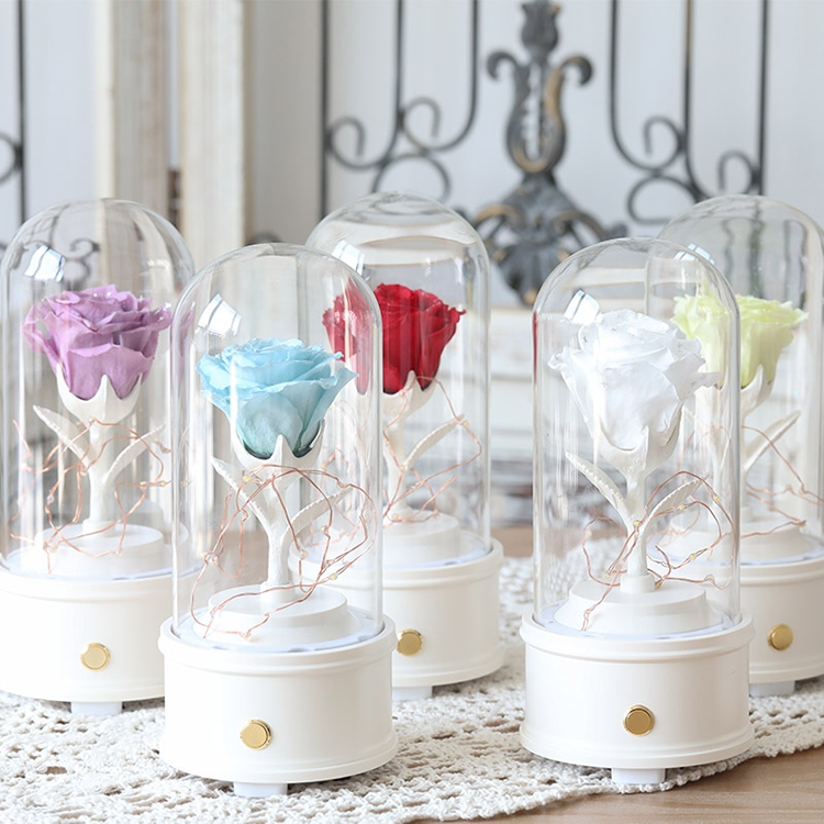 Caja Musical con Conexión Bluetooth, Caja Musical Clásica Personalizada Pequeña con Rosa Preservada, Caja Musical Única para Regalo de Novia