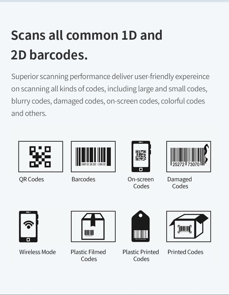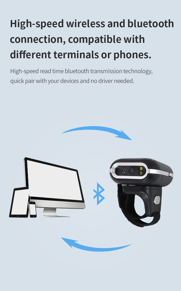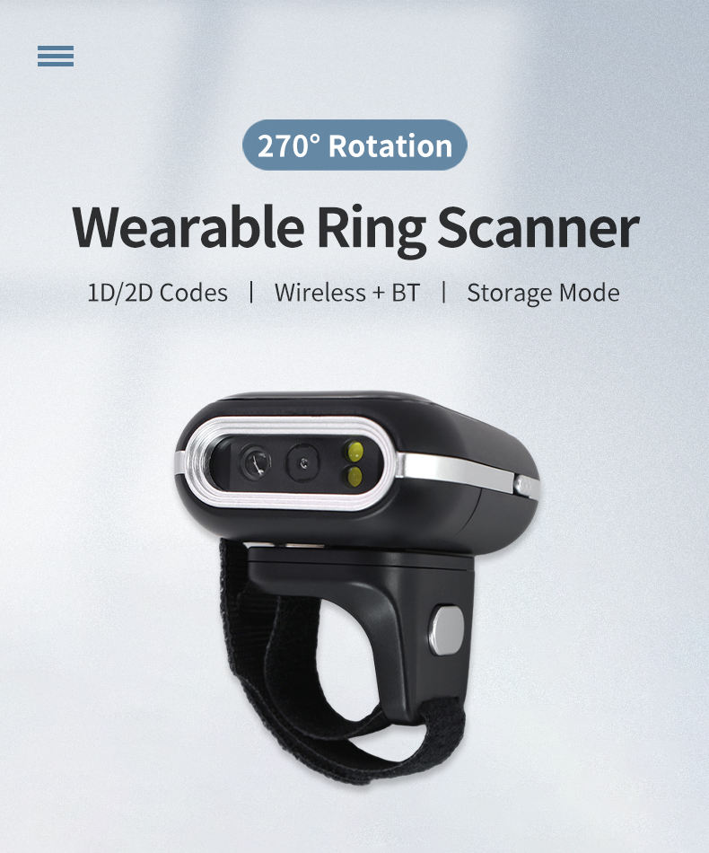 Lector de código de barras 1D 2D Portátil con Bluetooth, miniescáner de tamaño de bolsillo, anillo, inalámbrico, portátil, para libros, almacén, inventario, Express