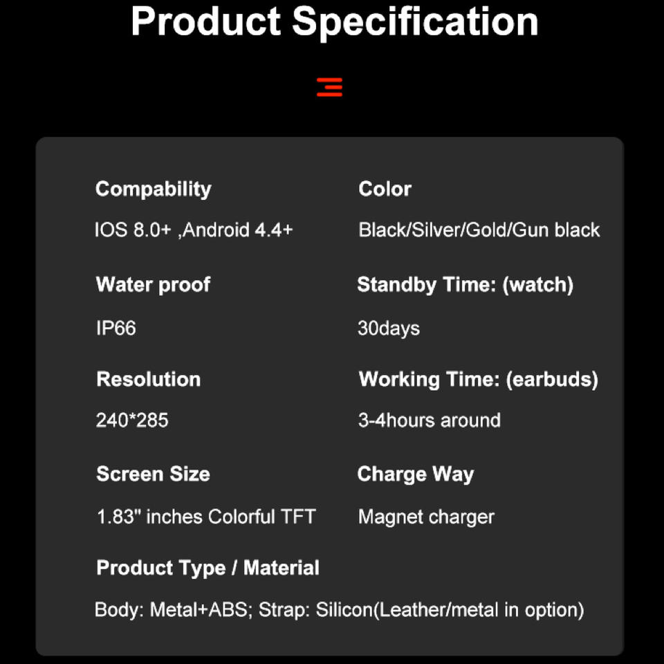 Reloj Bluetooth Auriculares Flash Reloj Con Audifon 2 en En 1 Retail ultra Smart Watch TWS Auriculares y tarjeta Sim y cámara