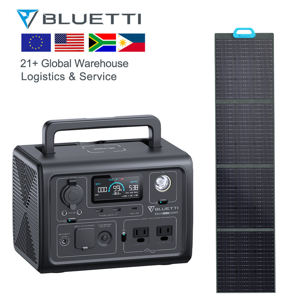 Generador solar Bluetti EB3A + PV120 110V Paneles solares Inversor bidireccional de litio con carga rápida