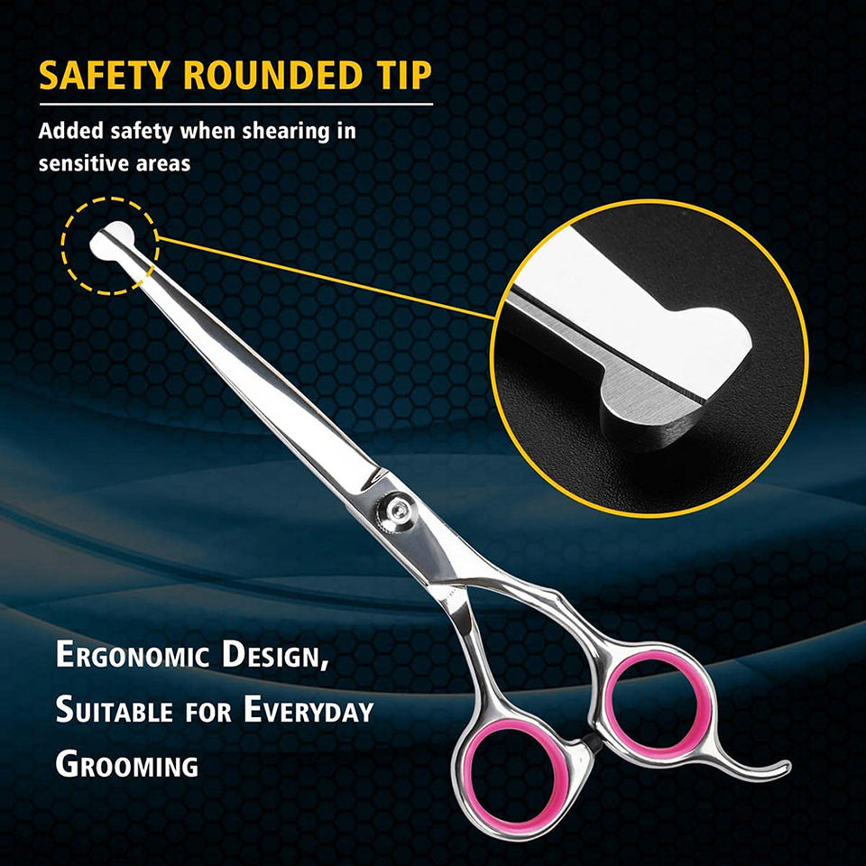 Acabado de espejo de borde romo con tornillo ajustable Tijera de aseo para mascotas Tijeras de aseo para el cabello de acero inoxidable