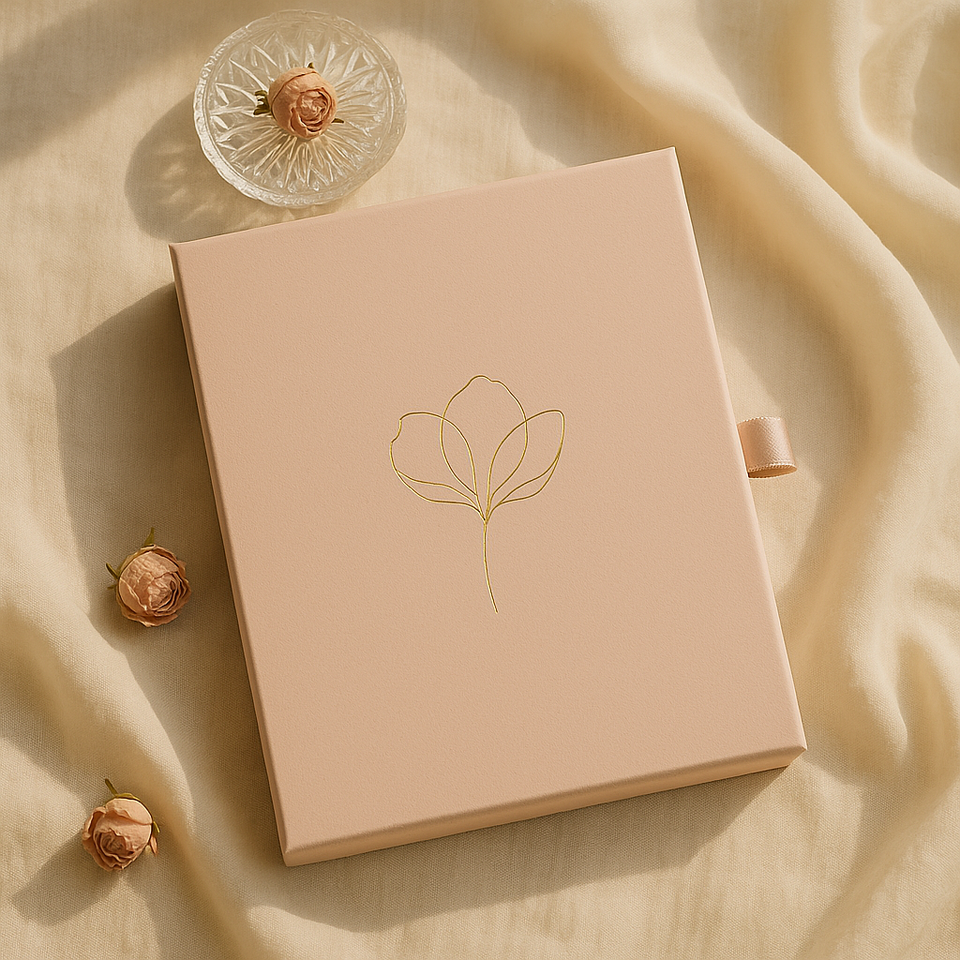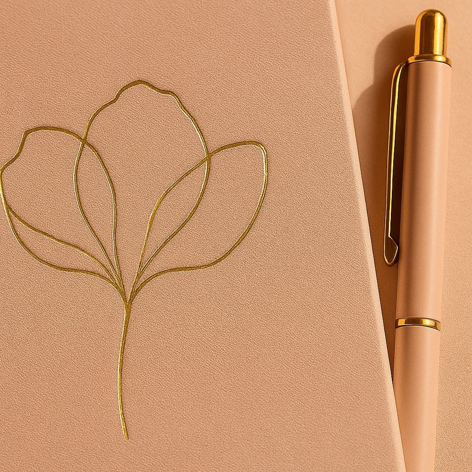 Set de Regalo de Cuaderno de Tapa Dura con Costuras Florales Rosa Rubor, Bolígrafo con Lámina Dorada, Caja de Cuero PU con Cinta, Páginas en Blanco para Diario