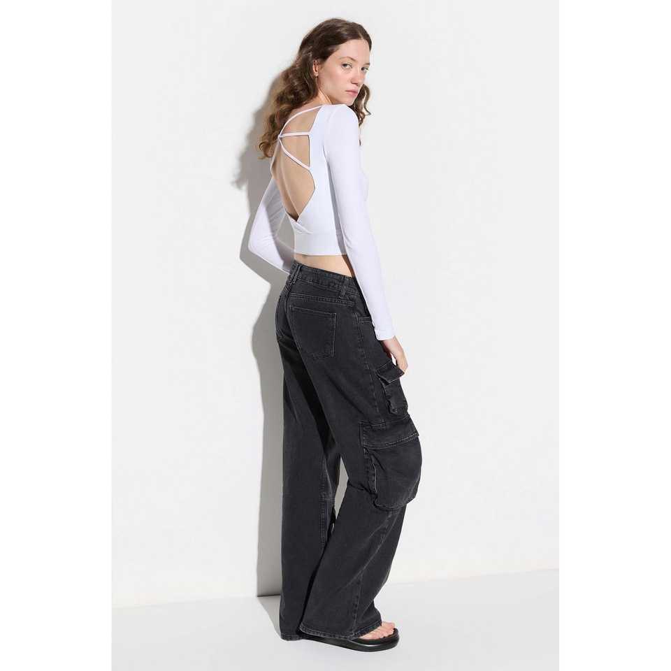 Blusa Casual Corta sin Espalda con Logotipo Frontal
