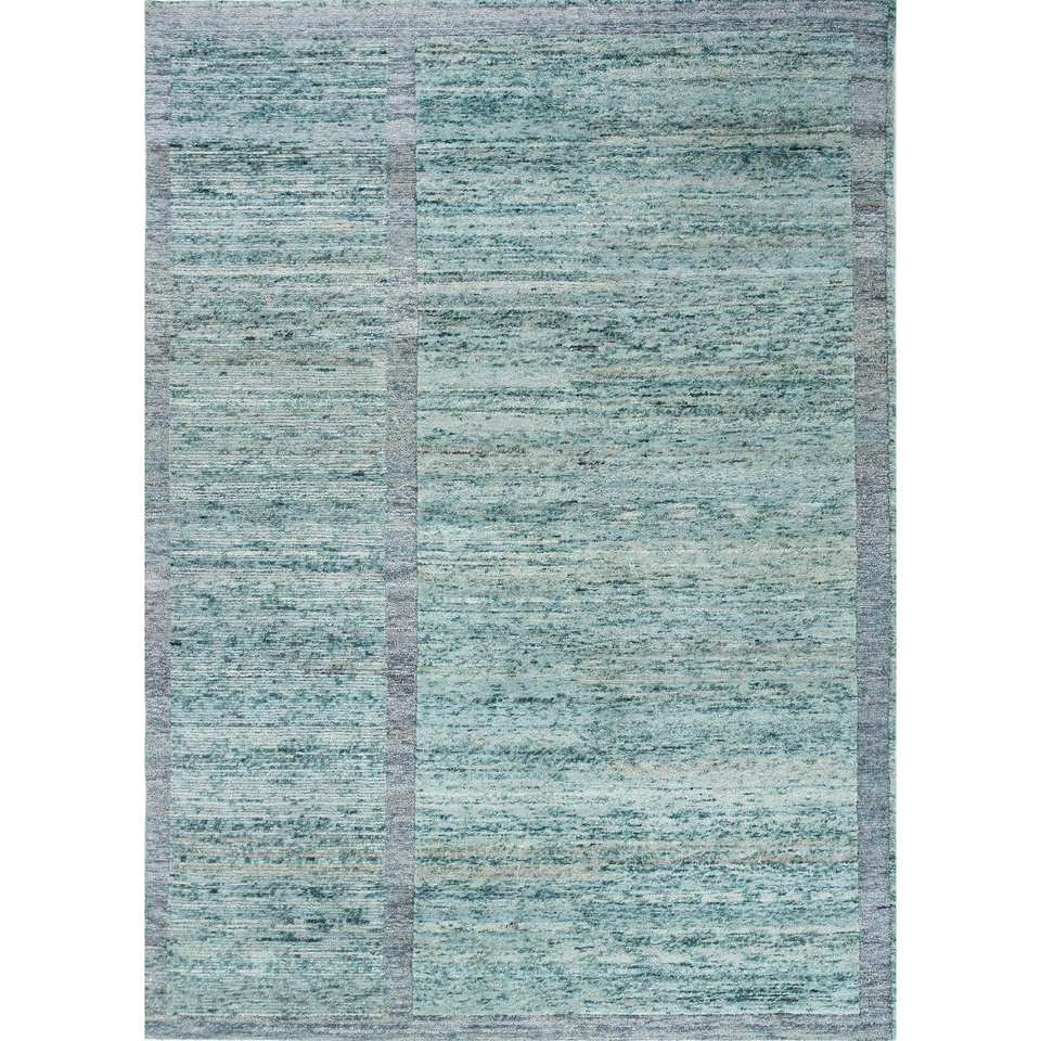 Alfombra de Lana Anudada a Mano Blythe Azul AIWL-3061 9x12 Rectangular para Sala de Estar, Patrón Abstracto para Decoración del Hogar y Uso en Pasillos
