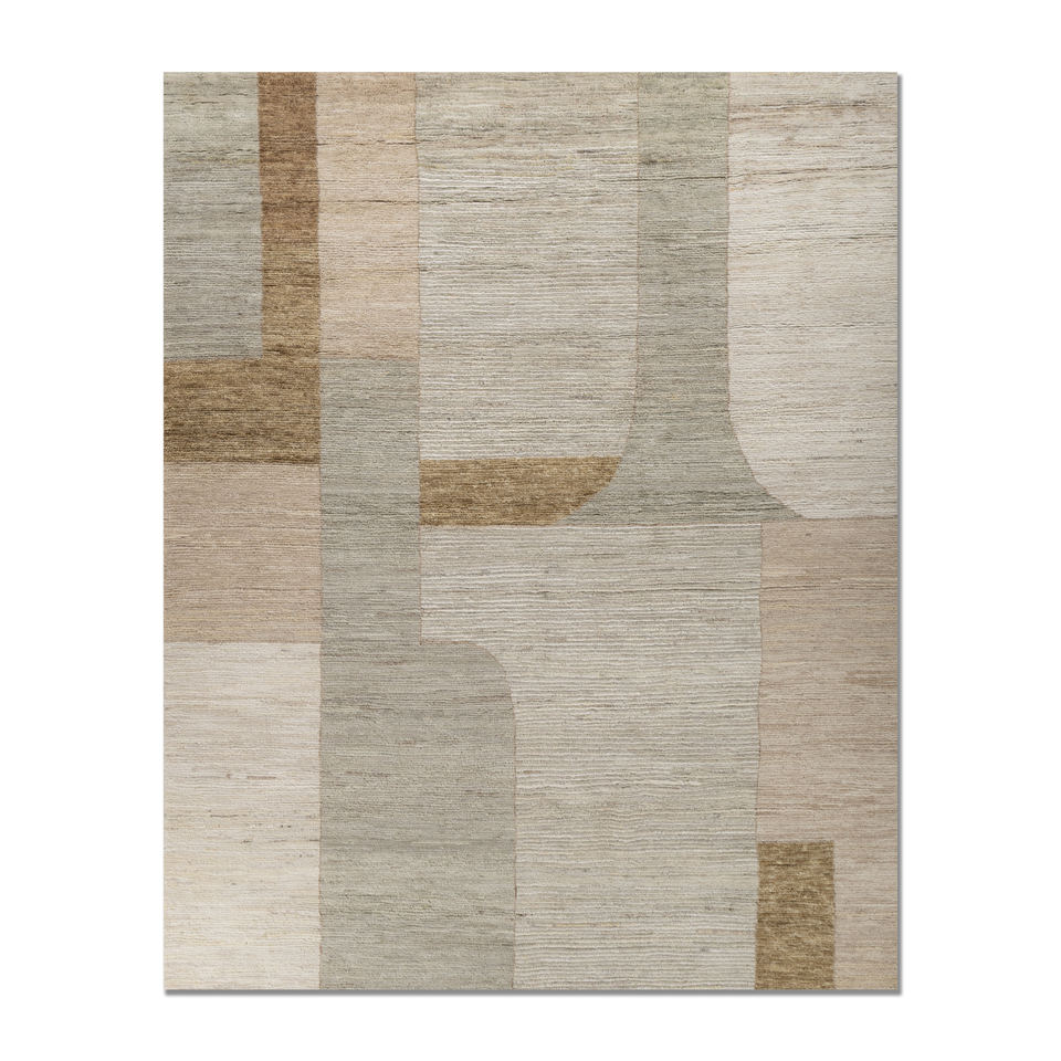 Alfombra Rectangular Abstracta Blythe Green de Lana Anudada a Mano 9x12 para Entrada/Ambiente, Modelo Re-1614, Alfombra Hecha a Mano Tipo Rompecabezas