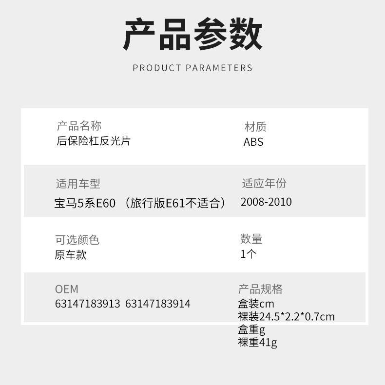 Reflectores de Parachoques Trasero para BMW Serie 5 E60, Forma de Menisco, Material ABS, Instalación con Clic, R004