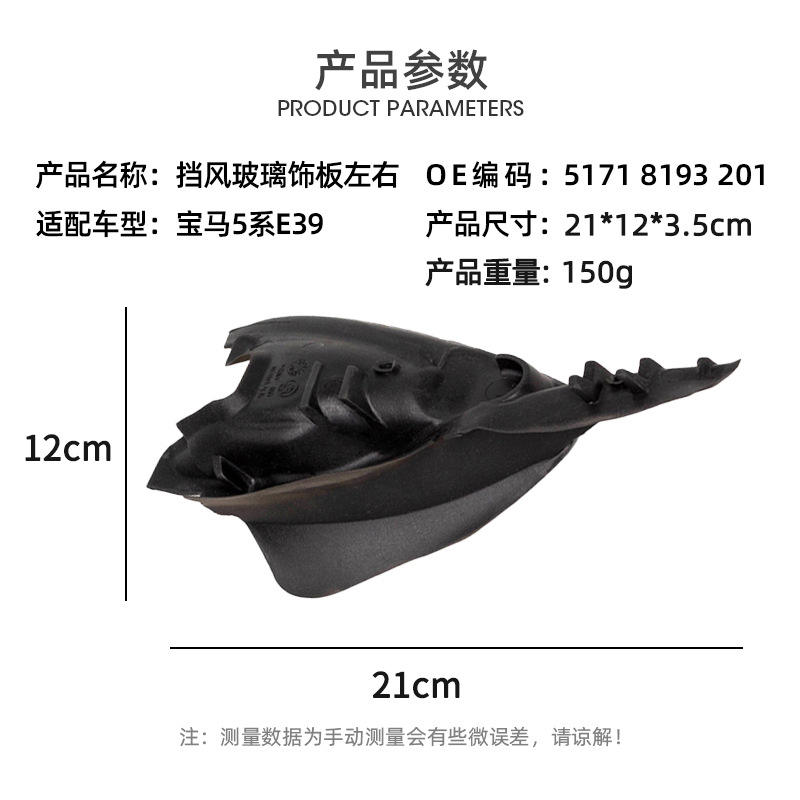 Panel de Moldura del Parabrisas para BMW E39, Izquierdo y Derecho, Protector Contra la Intemperie, Cubierta para Ventana de Auto, 51718193201 51718193202