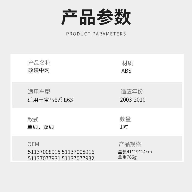 Modificación de la Parrilla Delantera del BMW E63, Plástico ABS, Línea Simple o Doble, 2003-2010