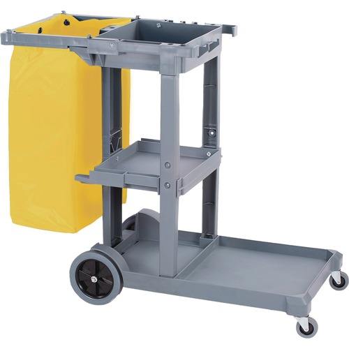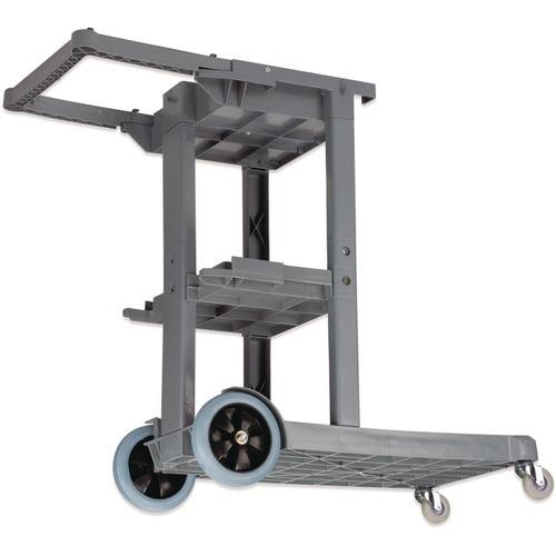 Boardwalk 19 pulgadas X 45 Pulgadas X 39 Pulgadas Carrito de Limpieza con 4 Estantes y 1 Contenedor, Carritos de Limpieza de Plástico Gris