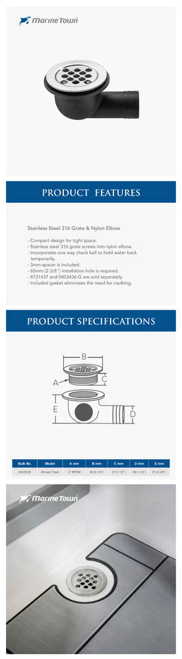 Drenaje de cubierta de casco de barco con codo de nailon de 90 ° de 1 a 1/2 pulgadas
