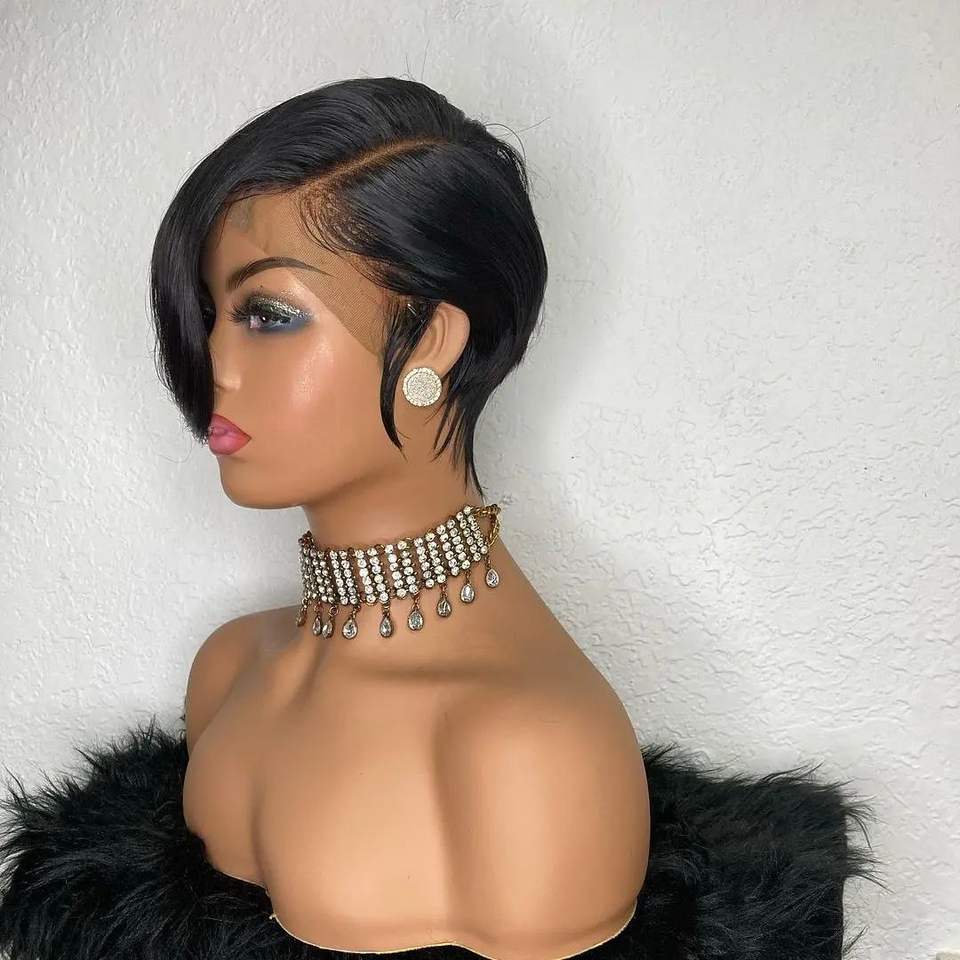 Bob Lace Front Pelucas Peruano Pixie Cut Short Hd Lace Cabello brasileño 100% Cabello humano virgen Marrón claro Encaje suizo Tamaño promedio