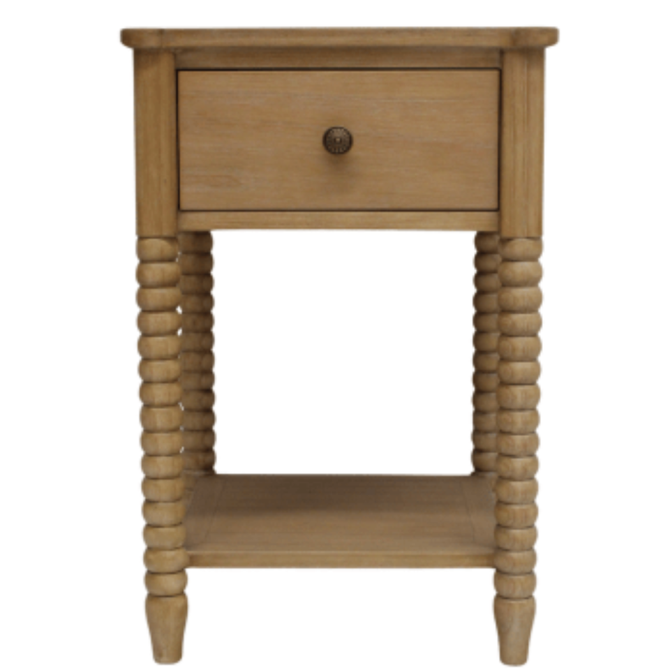 Bobby Collection Mesita de noche de 1 cajón Madera maciza de MINDI con acabado natural Muebles de dormitorio modernos