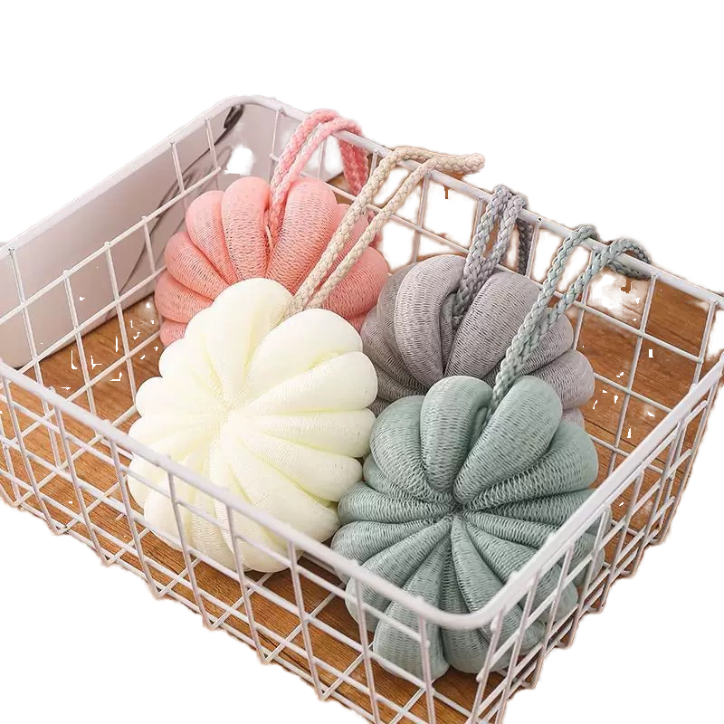 Nombre:Niños adultos de malla de PE suave esponja de ducha de calabaza de color sólido Flor de baño