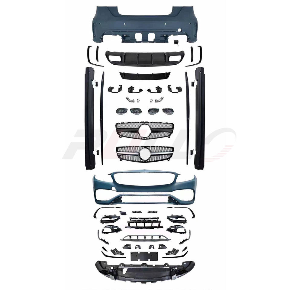 Kit de carrocería para Benz Clase A W176 2013-2018 cambio a estilo AMG45 incluye parachoques delantero y trasero con rejilla y faldón lateral