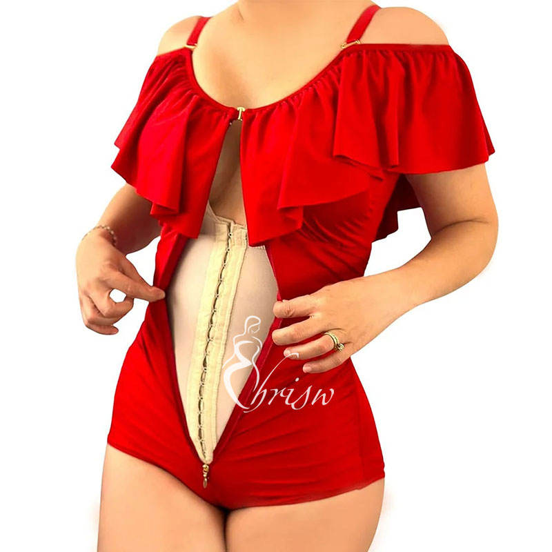 Traje de Baño Triangular con Volantes Moldeador de Cuerpo Faja Reductora de Abdomen y Entrenador de Cintura para Mujer