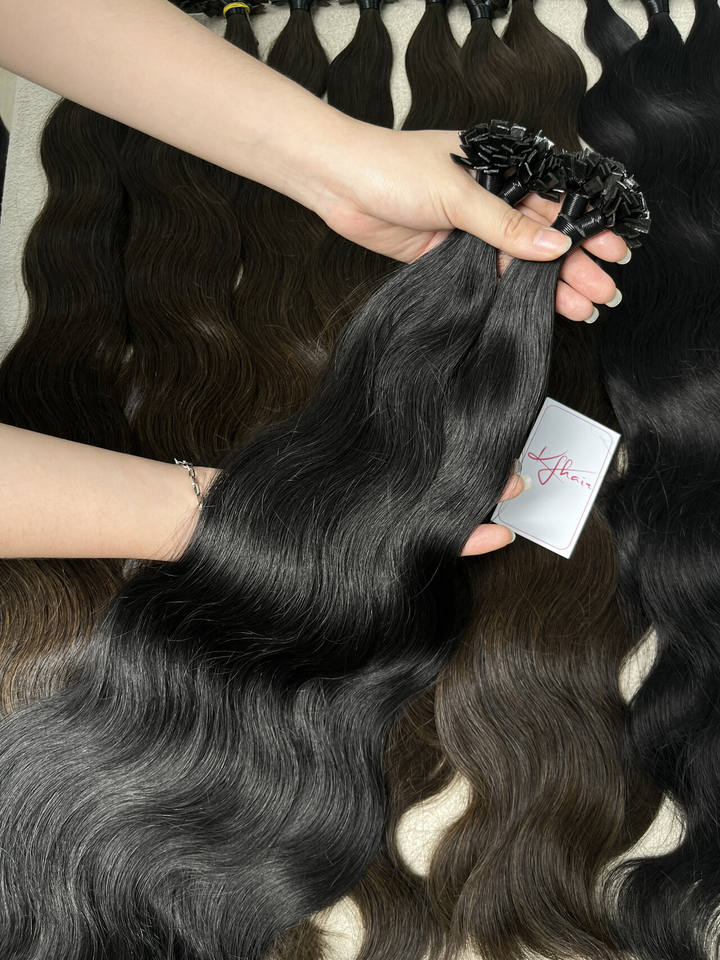 Extensiones de Cabello con Punta Plana Body Wave Virgin Remy, 100% Sin Procesar, Cutícula Alineada, Cabello Humano Vietnamita Crudo con Queratina, Sin Caída, Todos los Colores