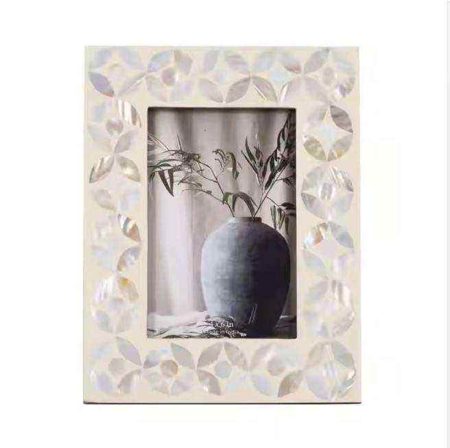 Bohemian Bone Inlay Eco-Friendly Waterproof Square Photo Frame Handmade Statement Home Decor Unique Artistic Gift Table Display