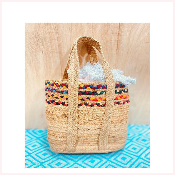 Bolso de ratán y Rafia hecho a mano Bohemian Breeze con tejido de algas marinas orgánicas y adornos de perlas y diamantes similares a joyas