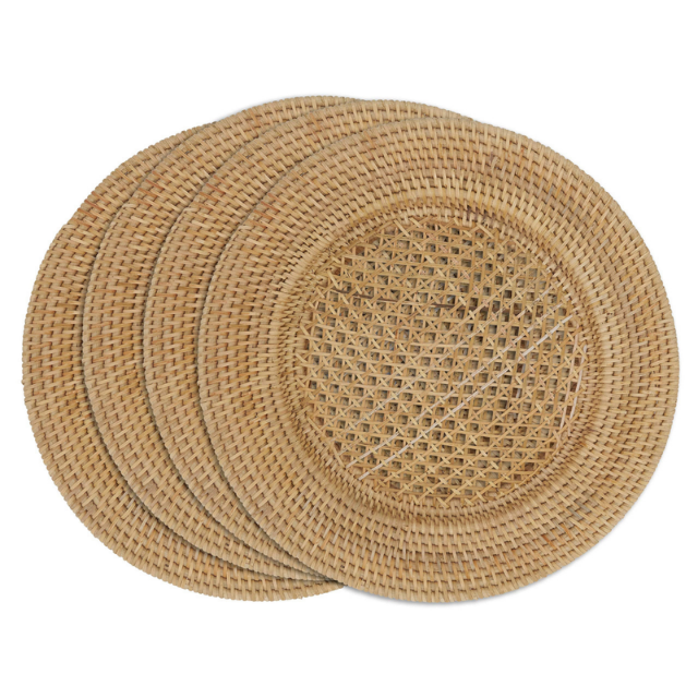 Platos de cargador de ratán hechos a mano de Vietnam, venta al por mayor, vajilla decorativa duradera ligera ecológica, perfecta para boda