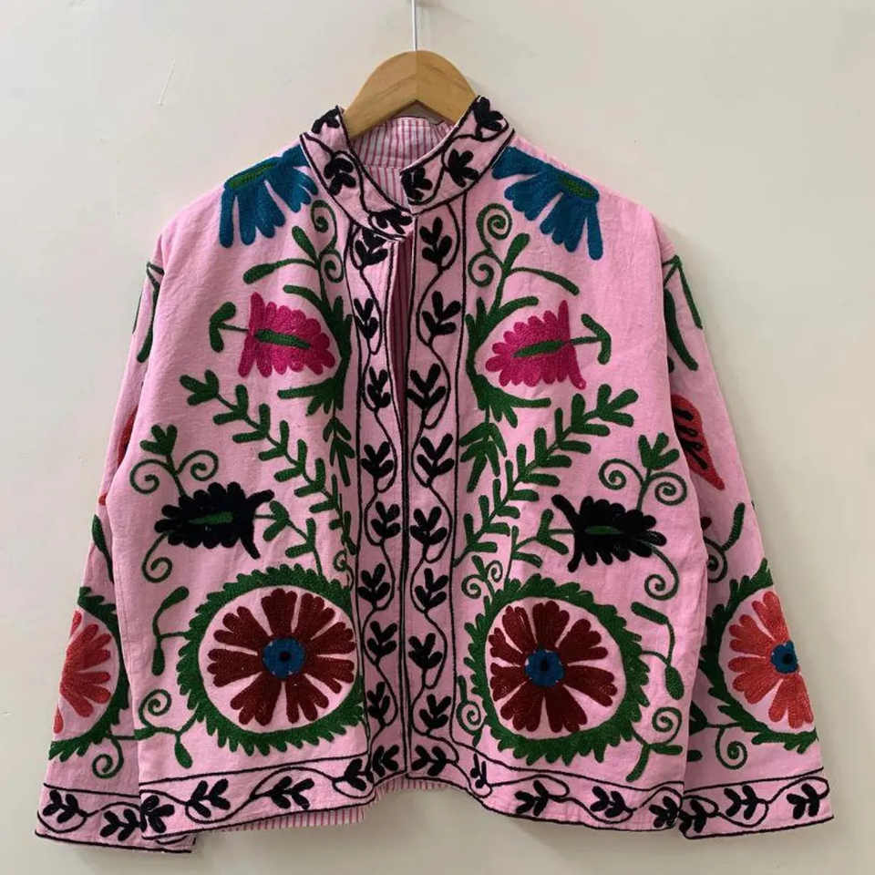 Chaqueta bordada de algodón bohemio, abrigo Suzani, chaqueta corta bordada Suzani, regalo para ella/mamá