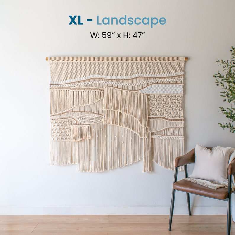 Cuerda de algodón Natural ecológica Bohemia macramé arte colgante de pared DIY Beige tapiz tejido a mano anudado sala de estar EH2503137