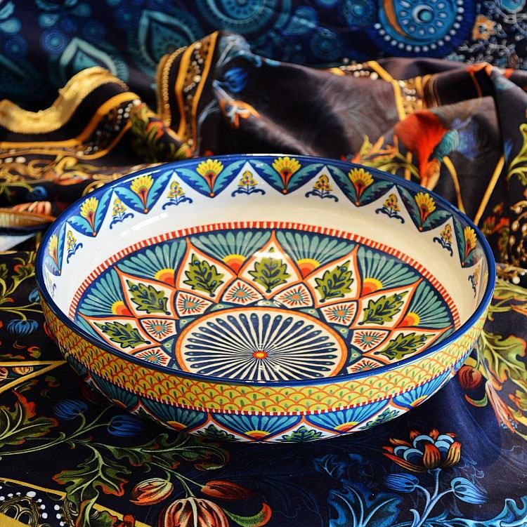 Vajilla de cerámica de estilo étnico bohemio, plato de lavabo grande para almacenamiento de cocina