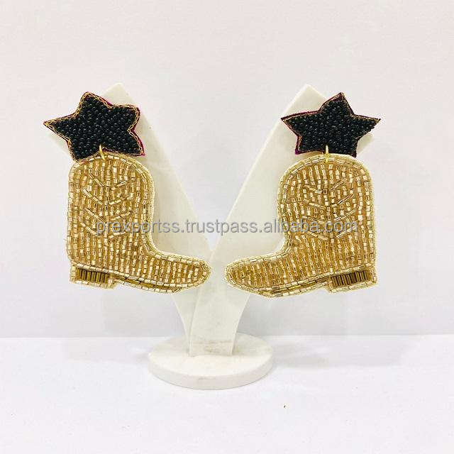 Bohemian Ginger Beer Christmas Flower Design Seed Beaded Drop Pendientes con corte de pera para unisex Hecho en India Idea de regalo