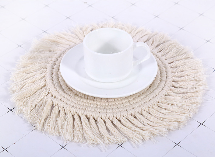 Posavasos de Macramé de Algodón Grueso, Hechos a Mano, Ecológicos, Antideslizantes, Resistentes al Calor, con Borla