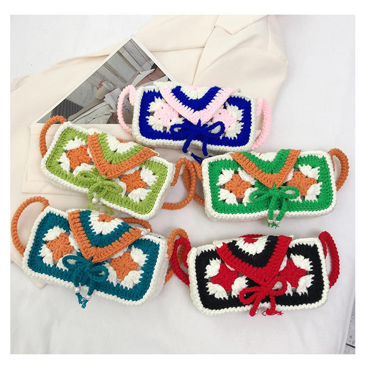 Bolso bohemio hecho a mano con flores coloridas, bolso de hombro cuadrado para teléfono móvil de ganchillo para mujer