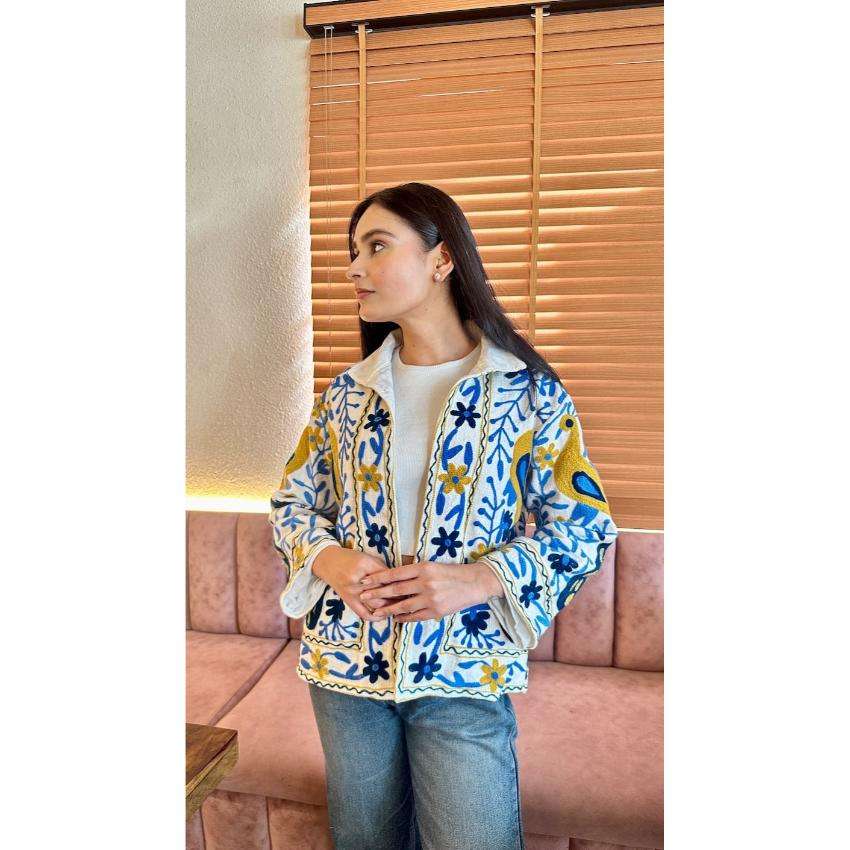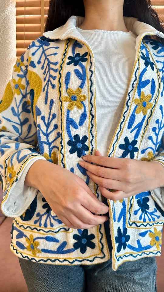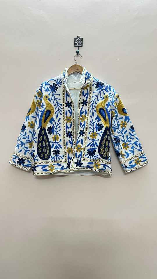 Chaqueta Suzani de Punto de Algodón Acolchada y Bordada Multicolor, Estilo Bohemio, con Ribete Tailandés, Clásica, Vintage, para Otoño e Invierno