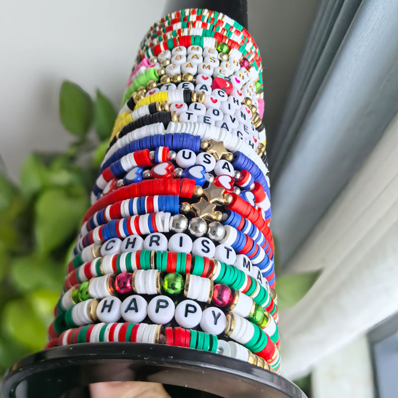 Bohemio personalizado palabras colorido semilla cuentas juego día enseñar feliz Navidad carta amistad pulsera