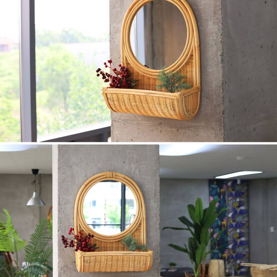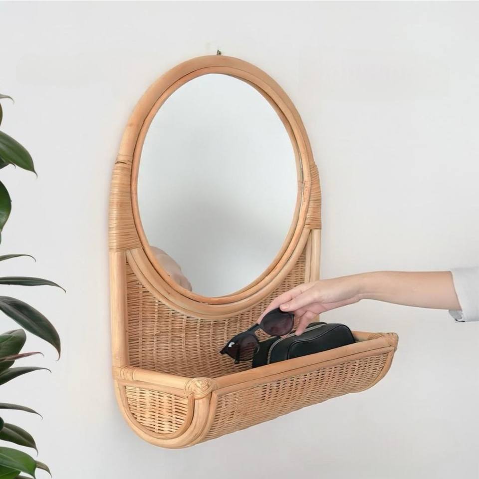 Rattan Wall Mirror with Shelf made in Vietnam