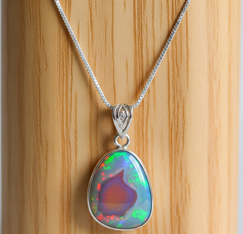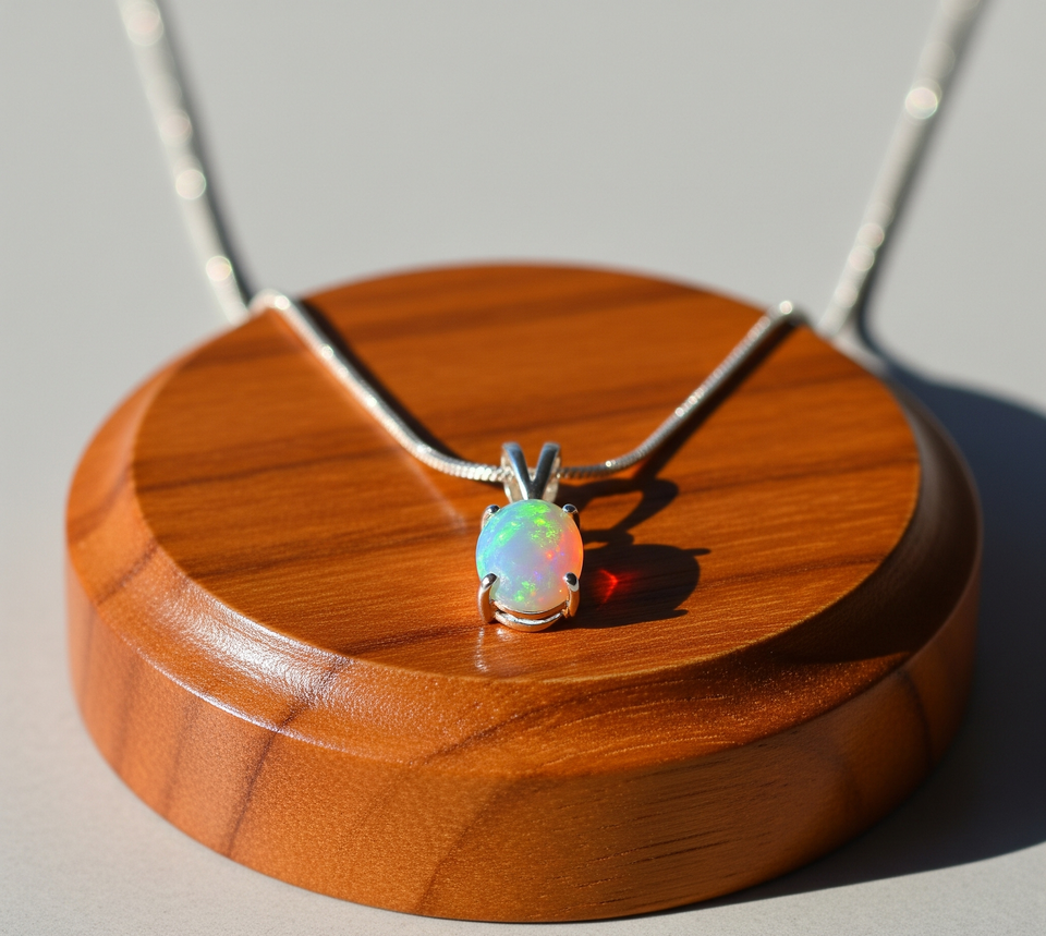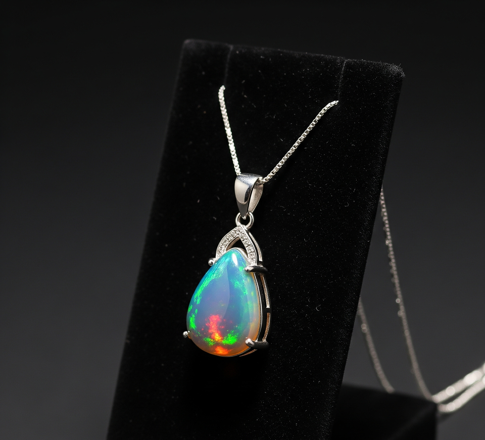 Colgante de Plata de Ley 925 de estilo bohemio, tendencia de moda, piedras de cristal curativas de ópalo etíope Natural, regalo budista de 18K