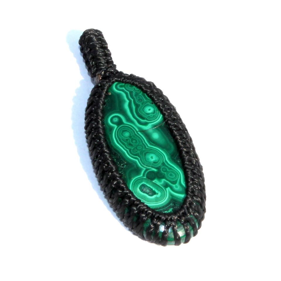 Estilo bohemio malaquita cabujón ovalado macramé envoltura colgante piedras de cristal curativas naturales