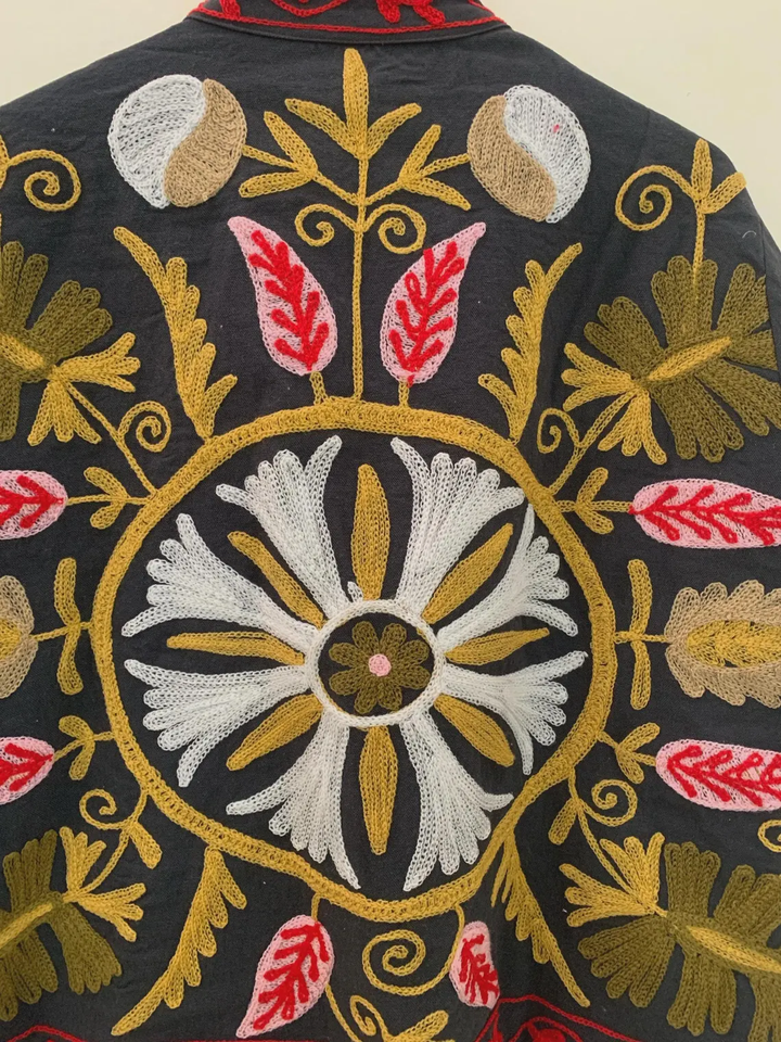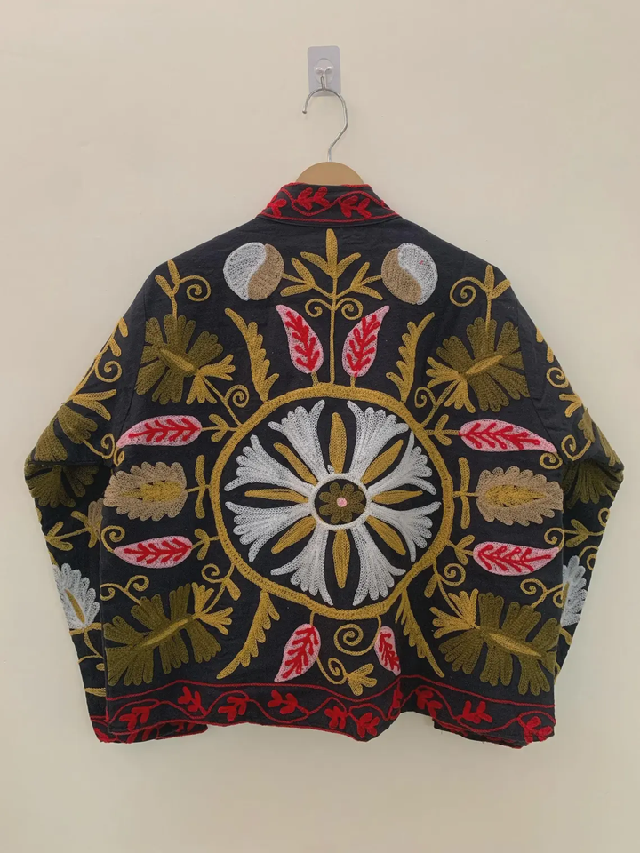 Chaqueta bordada de terciopelo bohemio Abrigo Suzani Chaqueta corta bordada Suzani