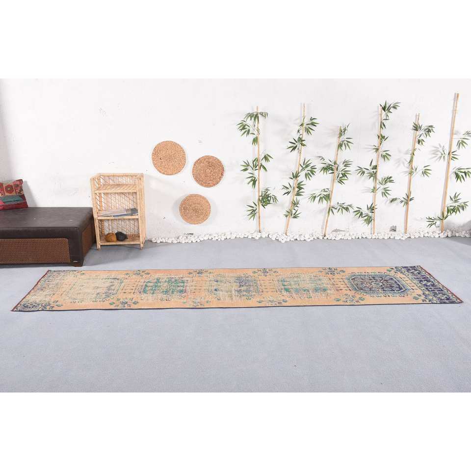 Alfombra de área de látex de lana de 2,7x12 pies Vintage bohemio estilo clásico Beige azul patrón de retazos 9x12 rectángulo para entrada