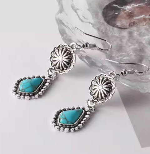 Pendientes y colgantes de turquesa vintage bohemios estilo de fiesta de moda chapado en oro de 14 quilates hecho a medida para mujer