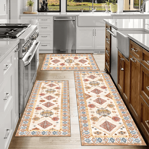 Juego de Alfombras de Cocina Antideslizantes de 3 Piezas Estilo Boho, Alfombrillas Gruesas Lavables para Piso, Alfombrillas para Cocina