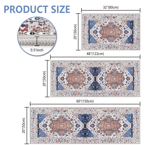 Juego de Alfombras de Cocina Antideslizantes de 3 Piezas Estilo Boho, Alfombrillas Gruesas Lavables, Alfombra de Pasillo y Tapetes Duraderos para Piso de Cocina