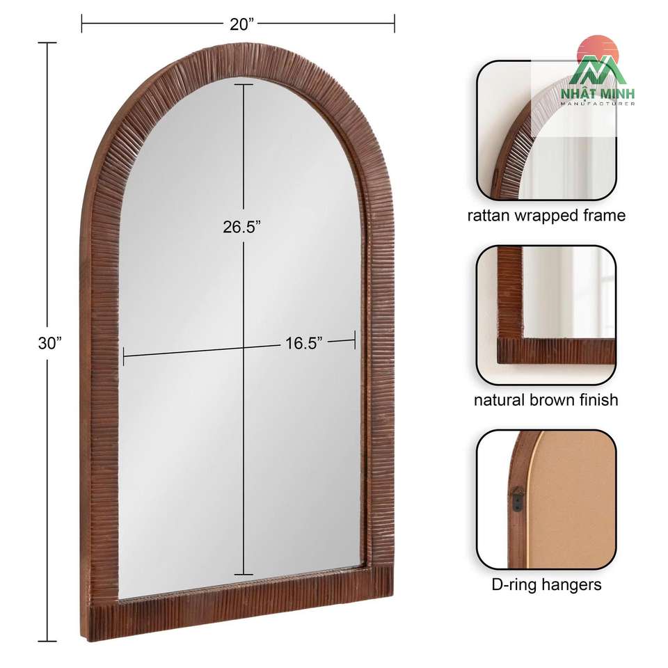 Nombre del producto:Espejo Boho Arqueado de Ratán, 20 x 30, Marrón