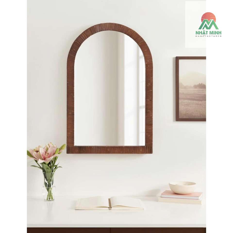 Espejo Boho Arqueado de Ratán, 20 x 30, Marrón