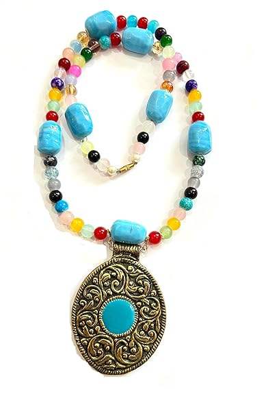 Collar de cuentas bordadas artísticas bohemias con acabado de tela suave, collar de cuentas bordadas hechas a mano con detalles de hilo real