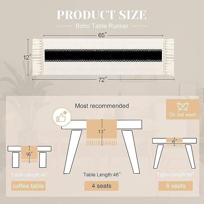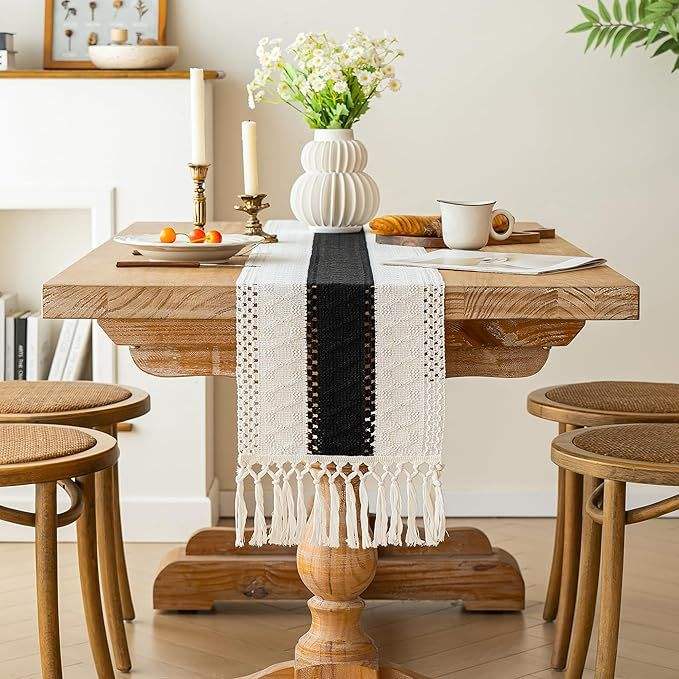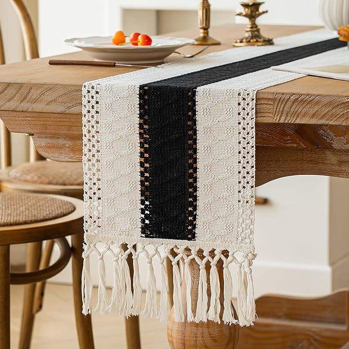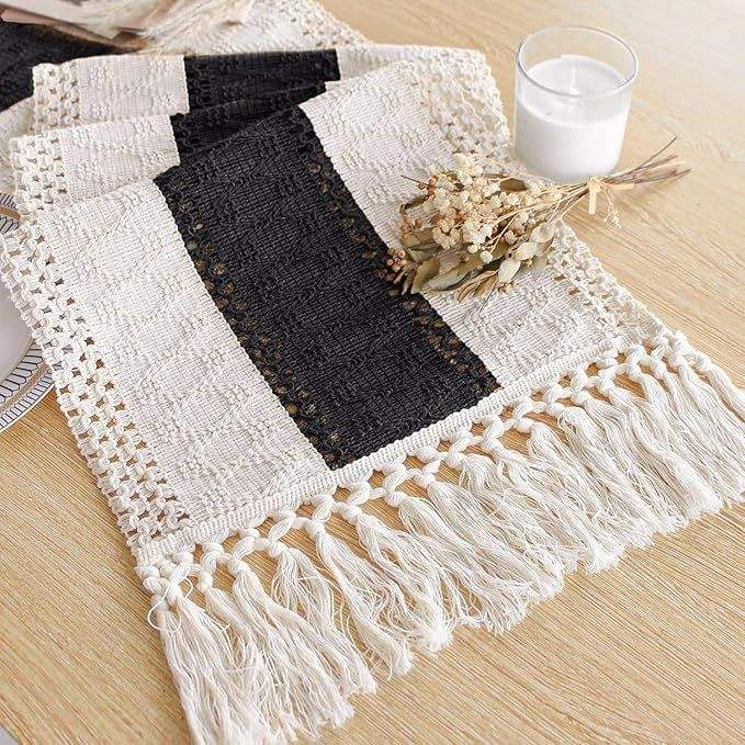 Camino de Mesa Boho Chic de 72 Pulgadas, Macramé con Borlas para Navidad y Halloween, Decoración Rústica para el Hogar en Color Negro