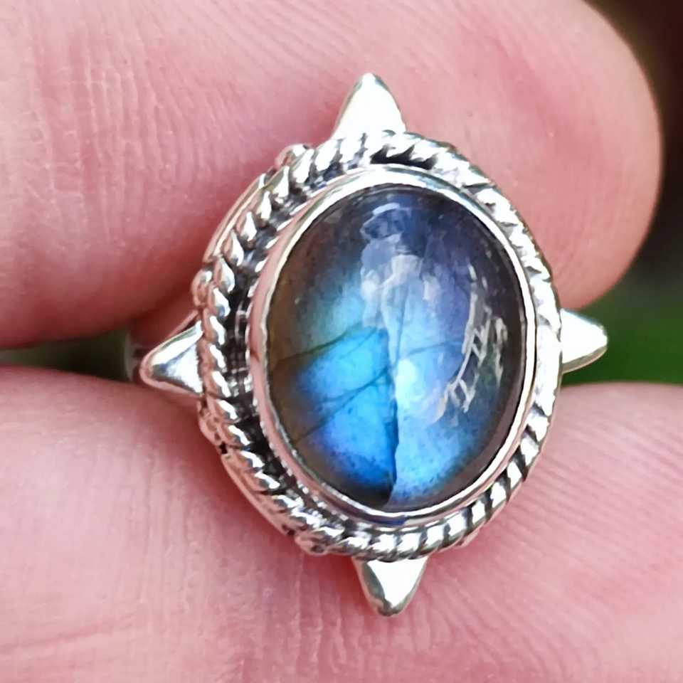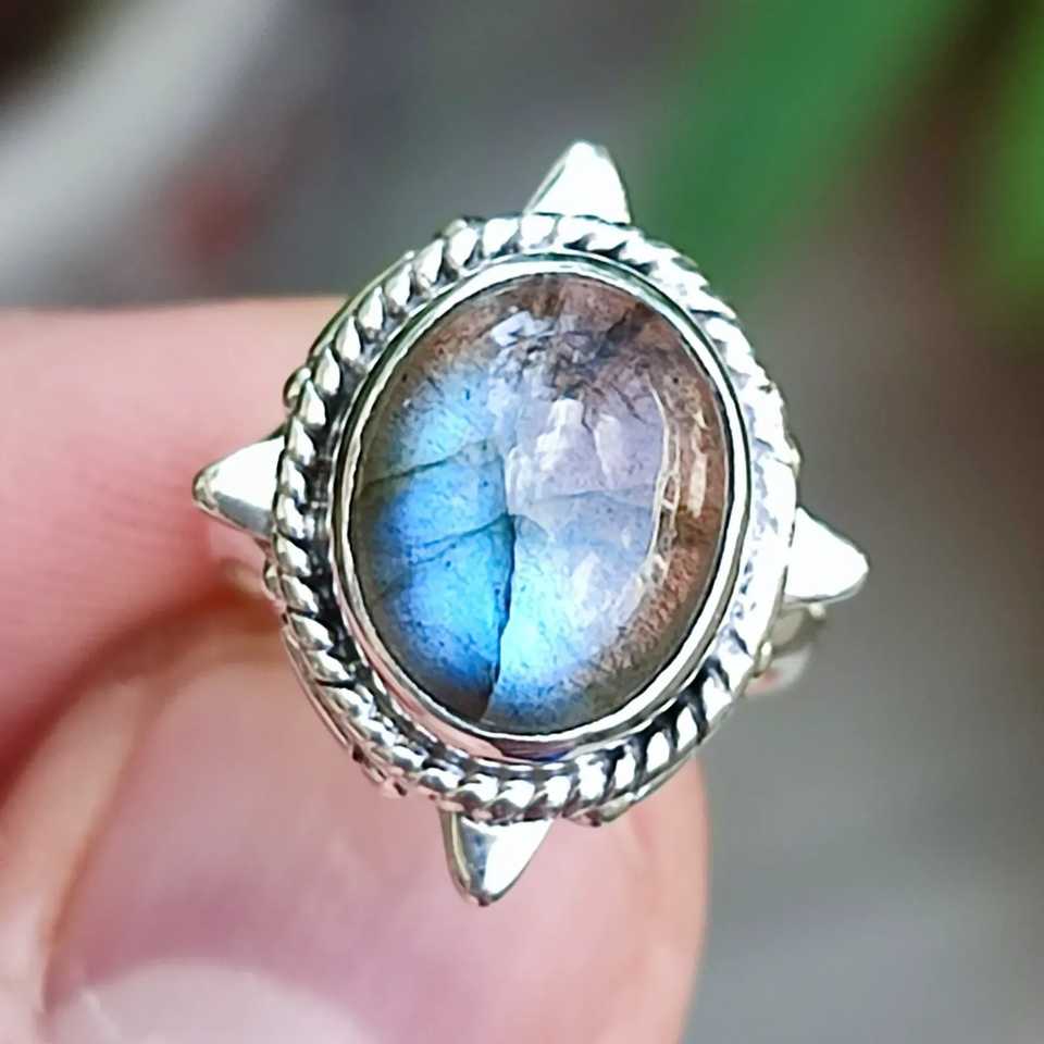Anillo Boho Chic de Labradorita, Plata de Ley 925, Hecho a Mano, Geométrico, Regalo Perfecto para Ella, Cumpleaños, Joyería con Piedra de Nacimiento de Noviembre