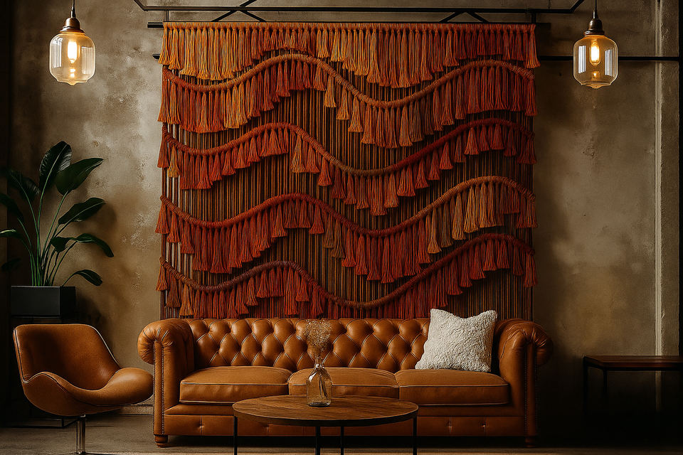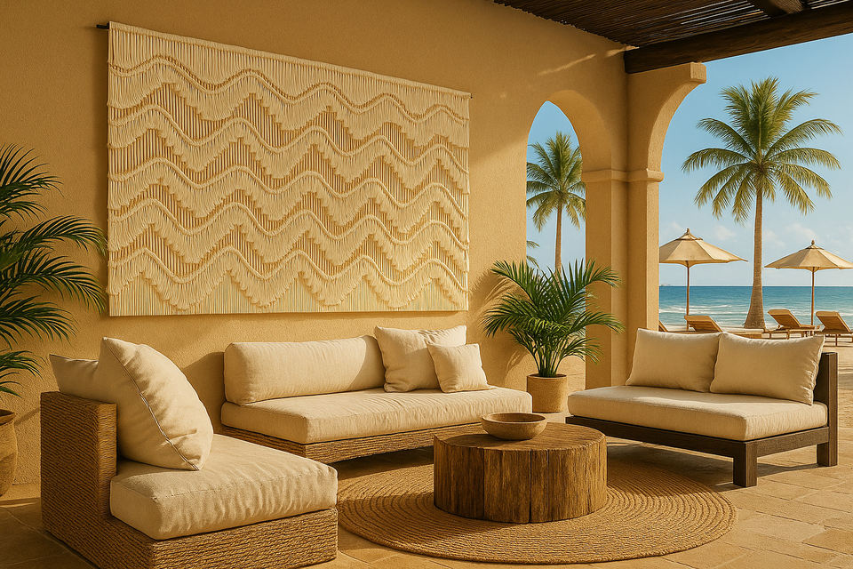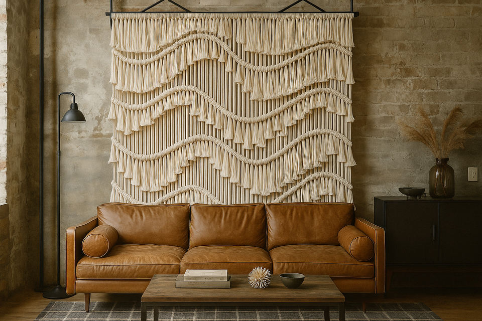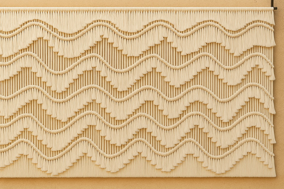 Tapiz de Macramé Boho Chic para Pared - Diseño de Ondas y Borlas en Capas, Algodón Natural, Decoración Rústica Costera Estilo Bali para Casa de Playa y Regalo Festivo