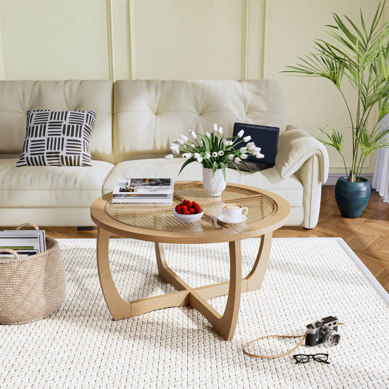Mesa de centro de ratán redonda Boho Coastal para muebles de sala de estar o centros de mesa