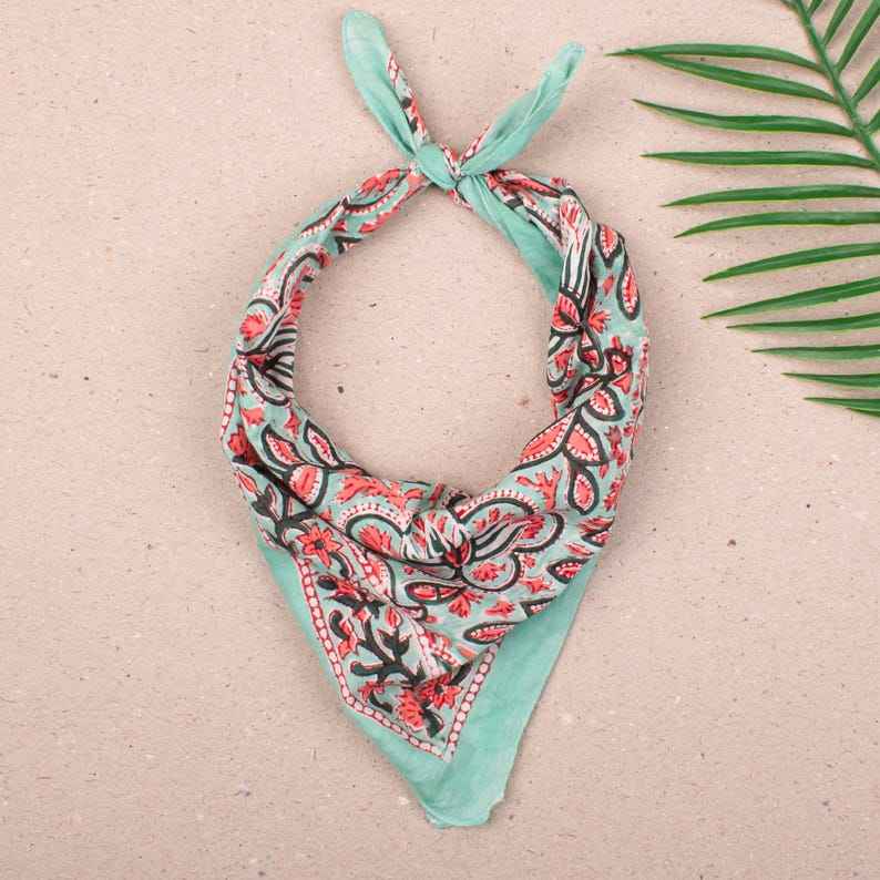 Pañuelo Boho de Algodón con Estampado de Bloques, Ligero, para el Cabello, para el Verano, para la Playa