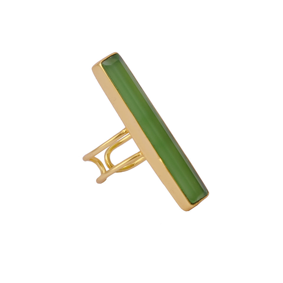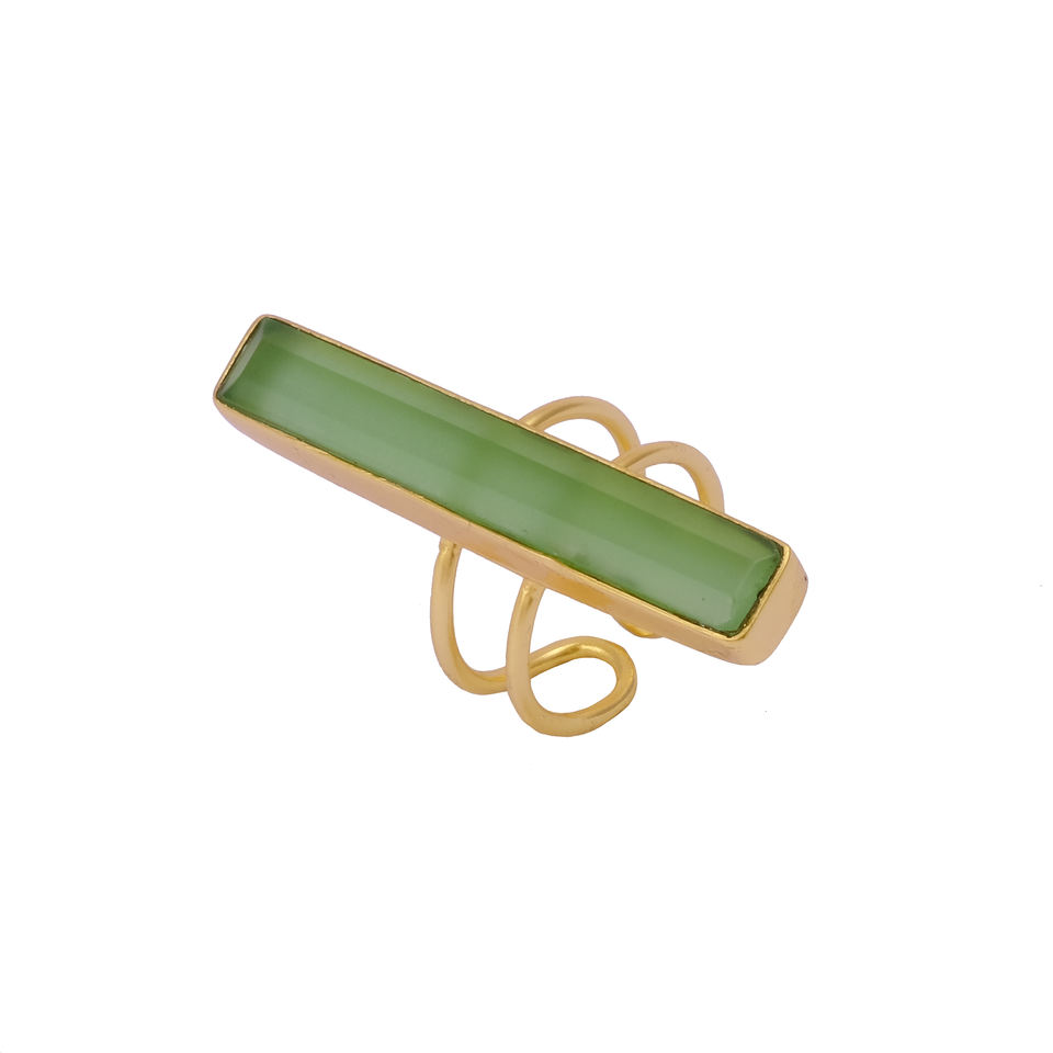 Anillo de diseño ajustable delicado boho, piedra preciosa de calcedonia verde, forma rectangular, chapado en oro, anillos de joyería de diseñador de lujo