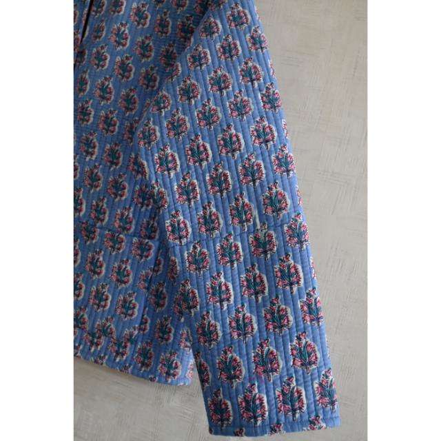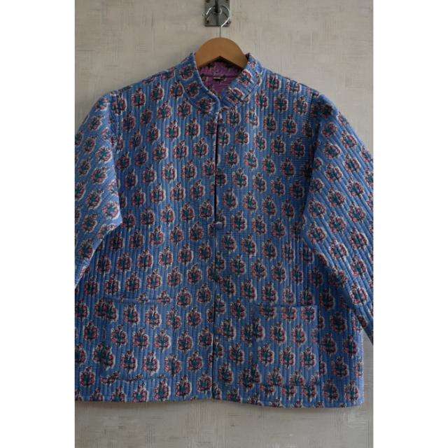 Chaqueta de Invierno de Algodón Tejido Acolchado Reversible Hecha a Mano con Estampado Floral Bohemio para Mujer, Manga Larga